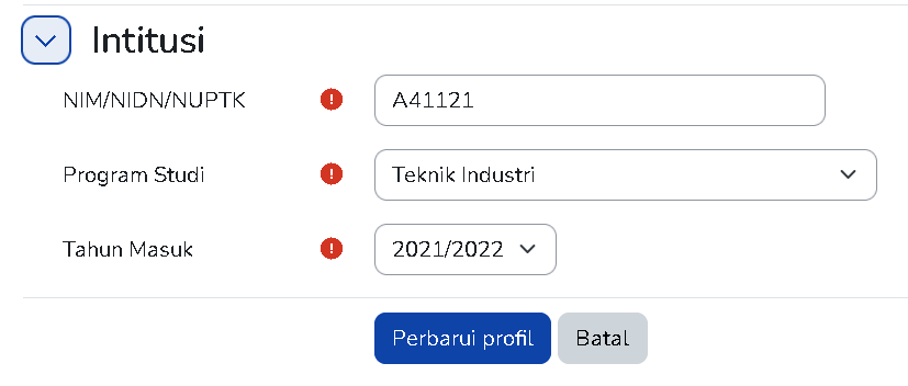 - Lengkapi atau perbarui data berikut (sesuai kebijakan kampus):