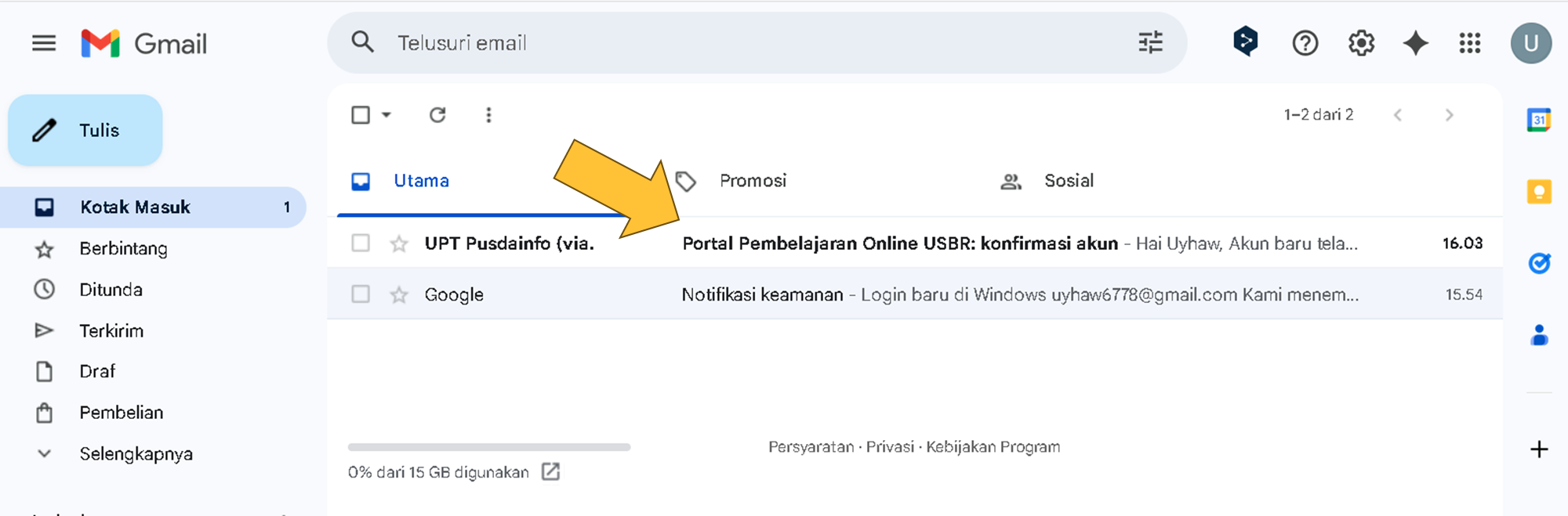 - Cek inbox email Anda. Jika tidak ditemukan pada inbox, silakan cek pada folder spam.